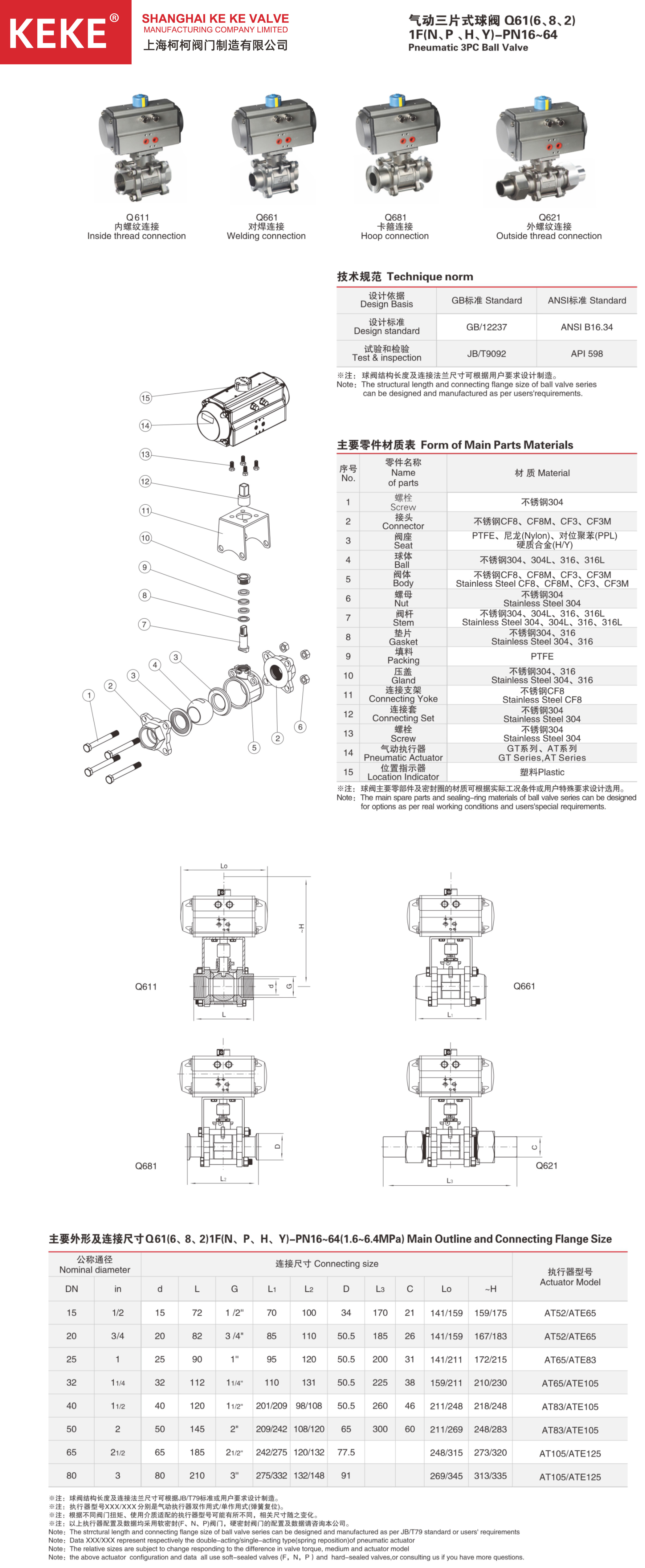 气动三片式球阀